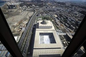 ويمتد جامع الجزائر على مساحة 27,75 هكتارا، أما مئذنته التي يمكن رؤيتها من كل أنحاء العاصمة، فهي الأعلى في العالم، إذ تبلغ 267 مترًا، أي 43 طابقًا، ويمكن الوصول إليها بمصاعد توفر مشاهد على العاصمة الجزائرية.
