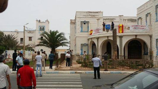 أقدم مجموعة من الشباب بسيدي إيفني، صبيحة يوم أمس الاثنين، على اقتحام المقر القديم للقنصلية الاسبانية، والمعروف باسم “الباكاضوريا”، وعلقوا فوقه العلم الاسباني، وشعار سيدي افني إبان سنوات الاستعمار. ولافتة مكتوب عليها: “نطالب من الحكومة الإسبانية تحقيق مطالبنا” باللغتين الاسبانية والانجليزية مفادها.