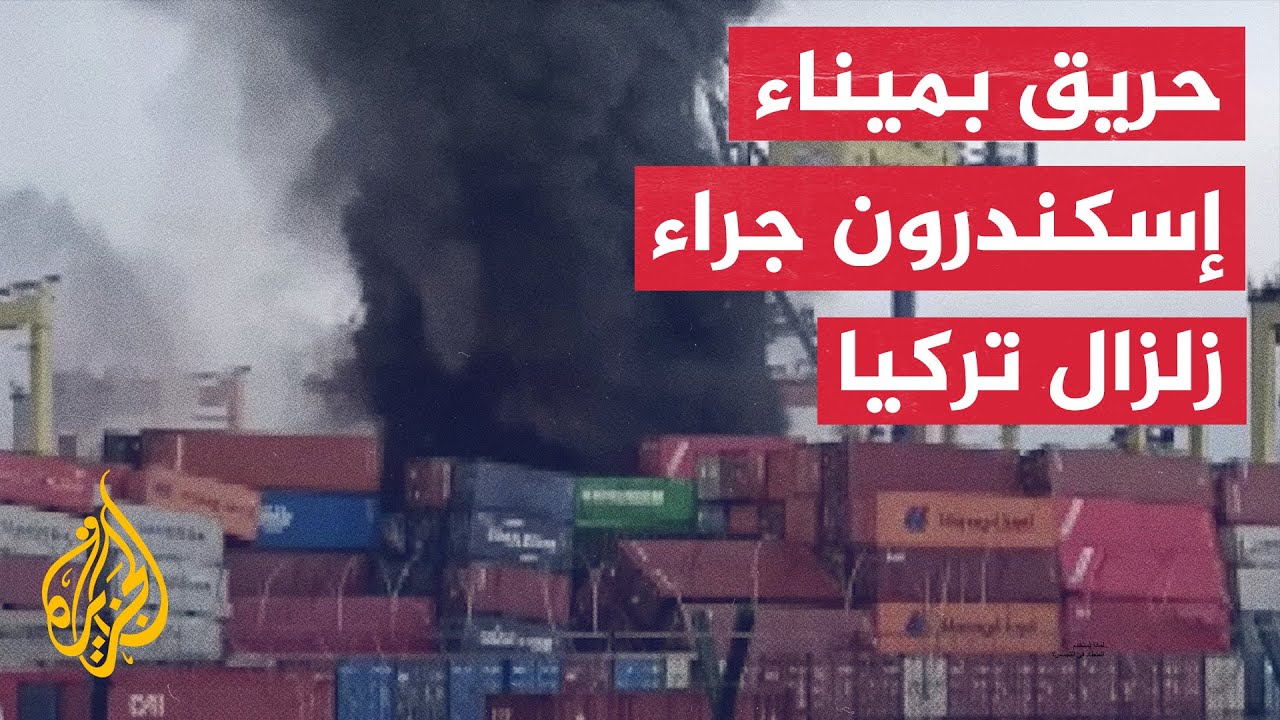 شاهد.. حريق في ميناء إسكندرون بهاتاي التركية جراء الزلزال