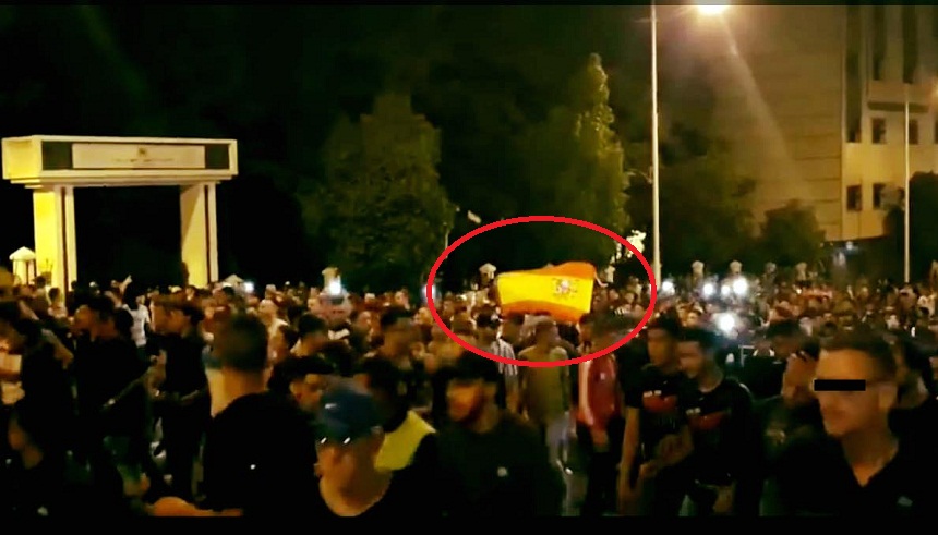 ظهر بعض المتظاهرين أمس بمدينة تطوان، وهم يحملون العلم الإسباني، فيما ينادون بالحياة والدوام لإسبانيا وبإسقاط الجنسية، معاكسة لبلدهم المغرب الذي لم يوفر لهم تنمية مجتمعية يجدون فيها ما يتيح لهم العمل والعيش الكريم، فيما بعضهم بالرغم من أن صوته بح بالمطالبة بالحقوق، لم يحترم حقوق المراكب وسائقيها، وراح أفراد منهم يخربون ويكسرون بعض ما طالته أيديهم في الشارع.