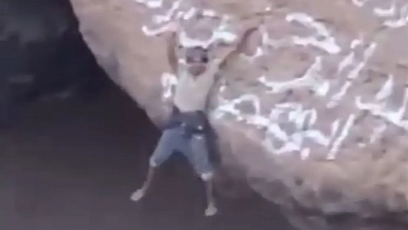 أظهر مقطع فيديو انتشر على مواقع التواصل الاجتماعي خلال الساعات الماضية، يمنياً من محافظة إب ينزل إلى أعماق فوهة بركان دمت في مدينة دمت التابعة لمحافظة الضالع، جنوب العاصمة صنعاء.
