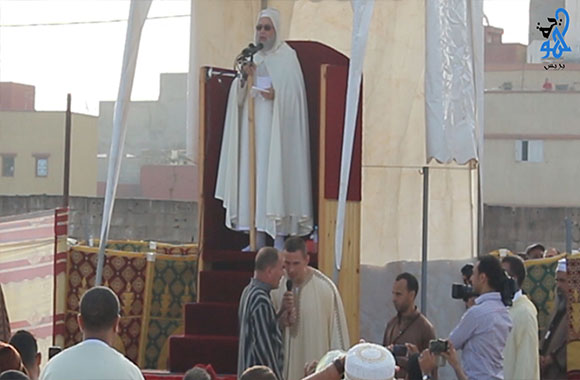لقن الشيخ يحيى المدغري مدير مدرسة ابن القاضي للقراءات والرسم وخطيب مصلى حي كريمة بمدينة سلا، ثلاثة أجانب شهادة الإسلام بعد انتهائه من خطبة العيد.