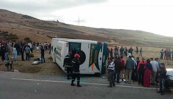 مصرع راكب وإصابة 24 في حادث انقلاب حافلة لنقل الركاب بين طنجة وتطوان