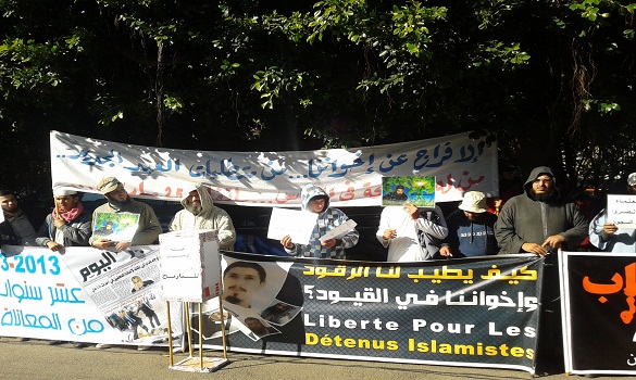 أسر ومناصرو المعتقلين الإسلاميين يحتجون أمام مقر حزب بنكيران والبرلمان