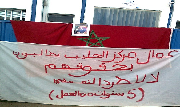 ويندد المحتجون على قرار شركة “TEC TRA” للمستخدمين بمركز الحليب بسلا، بطردهم من عملهم وضياعهم في مجهود خمسة سنوات من الاشتغال مع الشركة على حد قولهم.