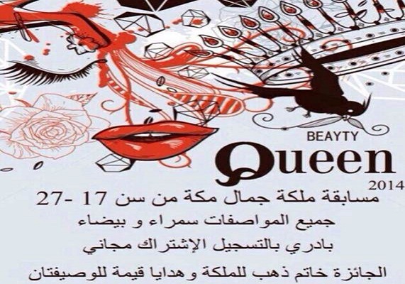وبحسب مصادر صحيفة “سبق” الإلكترونية، فإن عمليات الهيئة تلقت بلاغًا عن صورة إعلان لإقامة مسابقة ملكة جمال بمكة تضمن “مسابقة ملكة الجمال بمكة من سن 17-27، جميع المواصفات سمراء وبيضاء.. بادري بالتسجيل.. الاشتراك مجاني، الجائزة خاتم ذهب للملكة وهدايا قيمة للوصيفتين، للاشتراك الرجاء الاتصال على المنظمات (وتم وضع ثلاثة أرقام)، الموعد: المحرم 23، 24، 25، 26، ثم كتب اسم القاعة والعنوان، وتم توقيع الإعلان بـ”بازارا الأميرة والبارونة”.