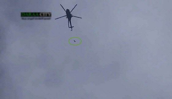 قام مصور سوري بتصوير إحدى مروحيات النظام السوري وهي تسقط برميلا متفجرا على مدينة درعا، من علو مرتفع جدا، وفقا للمفكرة.