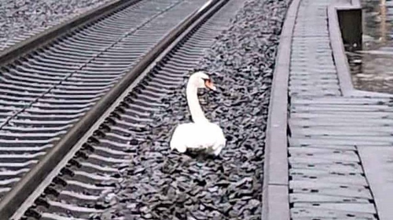 ورصدت البجعة الحزينة وهي تقبع على الخط الحديدي بالقرب من فولداتال، وسط البلاد، مما تسبب في إلغاء أكثر من 20 قطارًا، واستقرت البجعة في ذلك المكان، بعد مقتل بجعة ثانية اصطدمت بالخط العلوي فوق القضبان.