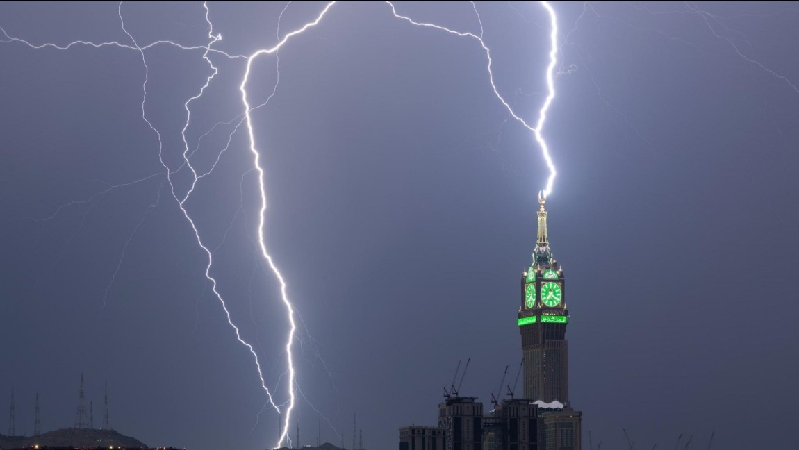 تمكّن المصوّر السعودي حماد الهذلي، من التقاط لحظة استثنائية لصاعقة برق تضرب قمّة برج السّاعة في مدينة مكة المكرمة، بالمملكة العربية السعودية.