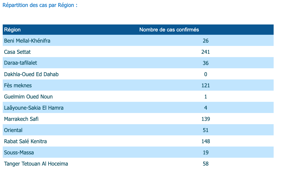 أن جهة الدار البيضاء سطات، في المرتبة الأولى بتسجيلها ل 241 حالة إصابة.