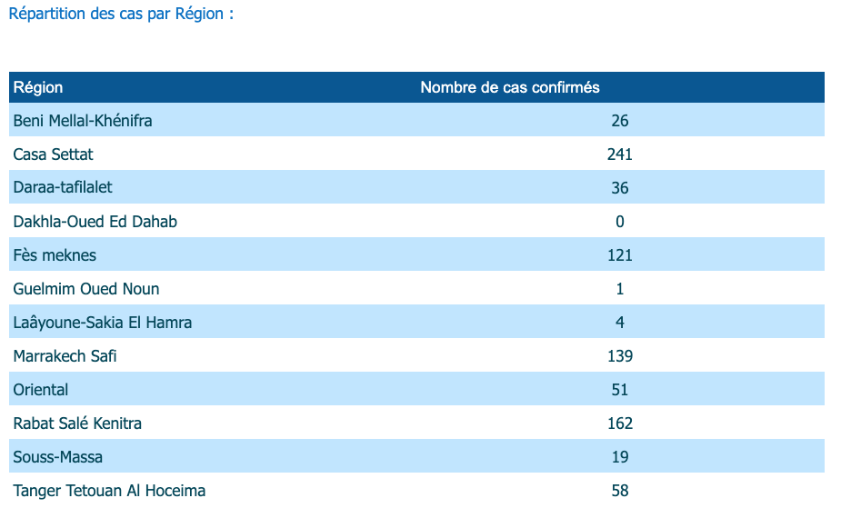 أن جهة الدار البيضاء سطات، في المرتبة الأولى بتسجيلها ل 241 حالة إصابة.