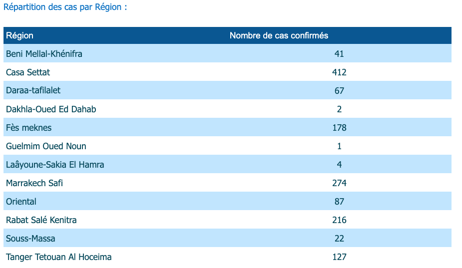 أن جهة الدار البيضاء سطات، في المرتبة الأولى بتسجيلها ل 412 حالة إصابة.