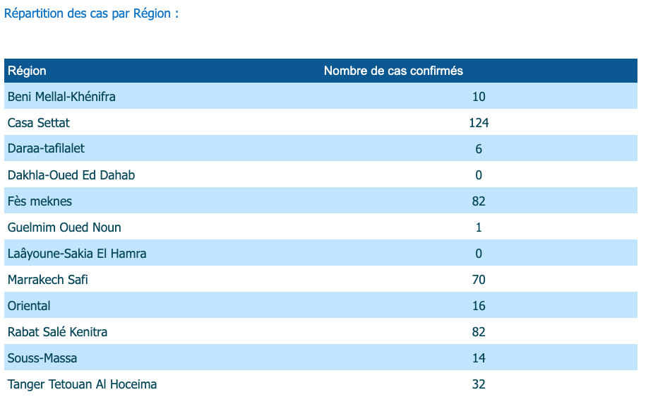 أن جهة الدار البيضاء سطات، في المرتبة الأولى بتسجيلها ل 124 حالة إصابة.