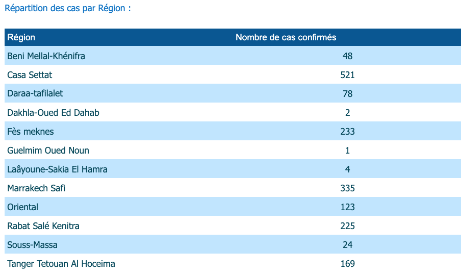 أن جهة الدار البيضاء سطات، في المرتبة الأولى بتسجيلها ل 521 حالة إصابة.