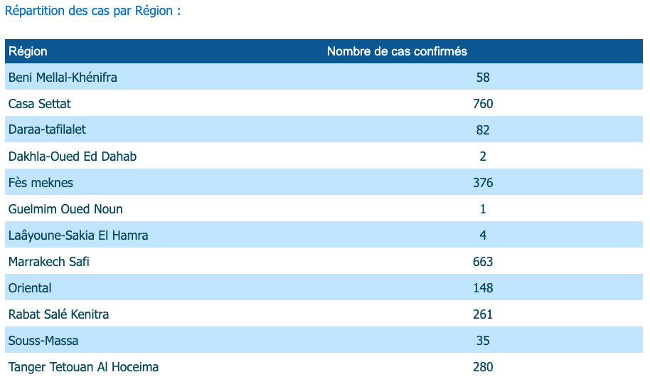 أن جهة الدار البيضاء سطات، في المرتبة الأولى بتسجيلها ل 760 حالة إصابة.