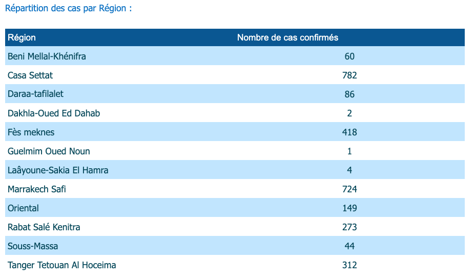 أن جهة الدار البيضاء سطات، في المرتبة الأولى بتسجيلها ل 772 حالة إصابة.