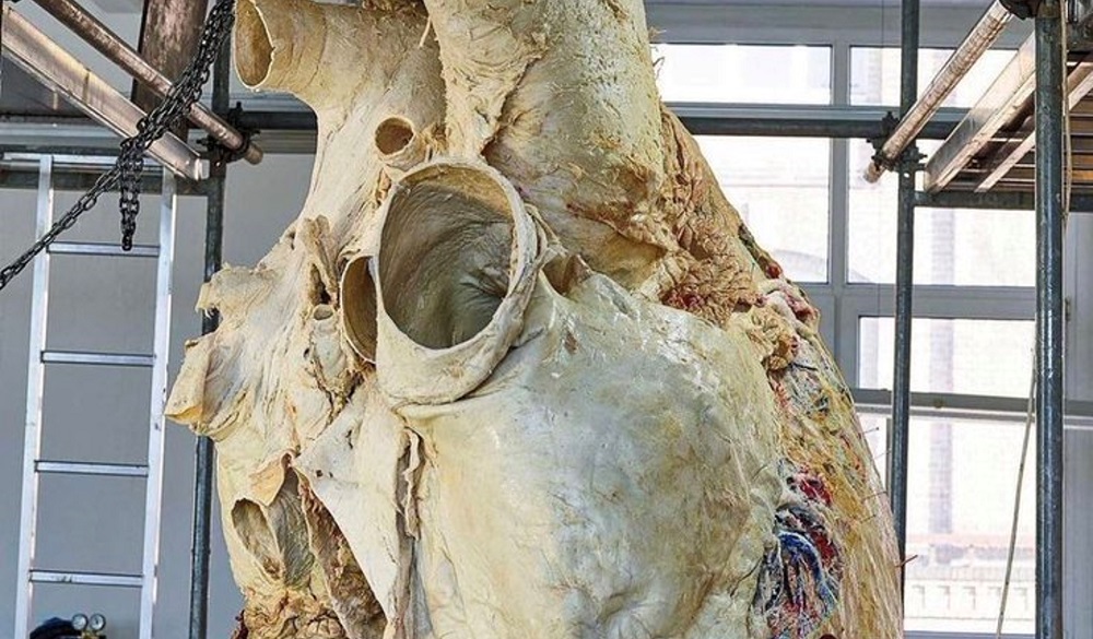 هذه الكتلة الحية الهائلة وضع بها الخالق عضوا فريدا أيضا، وهو القلب الأضخم على الأرض، والذي يصل وزنه إلى حوالي 180 كيلوغراما، أي أضخم من رجلين بالغين أو ثلاثة رجال من أصحاب الوزن الخفيف.