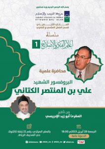 ينظم قسم العمل العلمي والفكري التابع لحركة التوحيد والإصلاح، يوم الجمعة 28 أبريل 2023 على الساعة السادسة مساء (18.00)، بالمقر المركزي للحركة بالرباط محاضرة علمية حول البروفسور الشهيد علي بن المنتصر الكتاني.