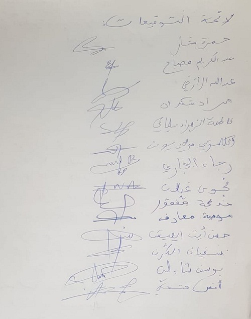وضمت لائحة التوقيعات كل من الأساتذة التالية أسماؤهم: