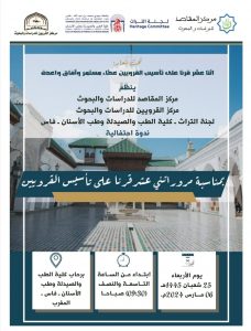 ينظم مركز المقاصد للدراسات والبحوث ومركز القرويين للدراسات والبحوث ولجنة التراث بكلية الطب بفاس ندوة احتفالية بمناسبة مرور 12 قرنا على تأسيس جامعة القرويين، وذلك يوم الأربعاء 6 مارس 2024 على الساعة 9.30 صباحا، برحاب كلية الطب بفاس.