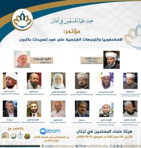 أعلنت هيئة علماء المسلمين في لبنان، عزمها تنظيم مؤتمر إسلامي واسع، على إثر التصريحات العنصرية الأخيرة، للرئيس الفرنسي إيمانويل ماكرون.