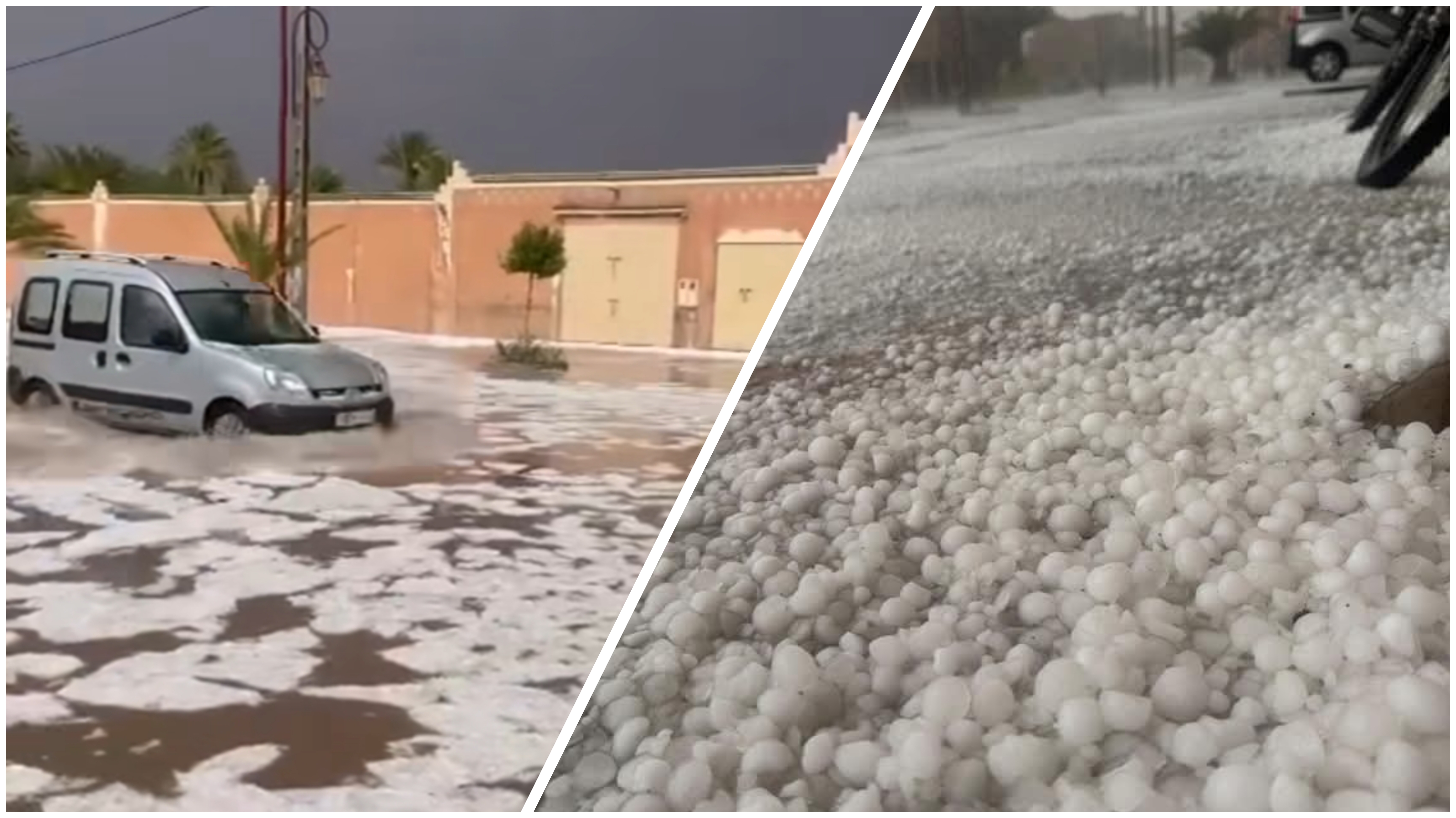 عرفت مدينة زاكورة مساء اليوم الخميس، تساقطات مطرية عاصفية مصحوبة بالبرد (التبروري).