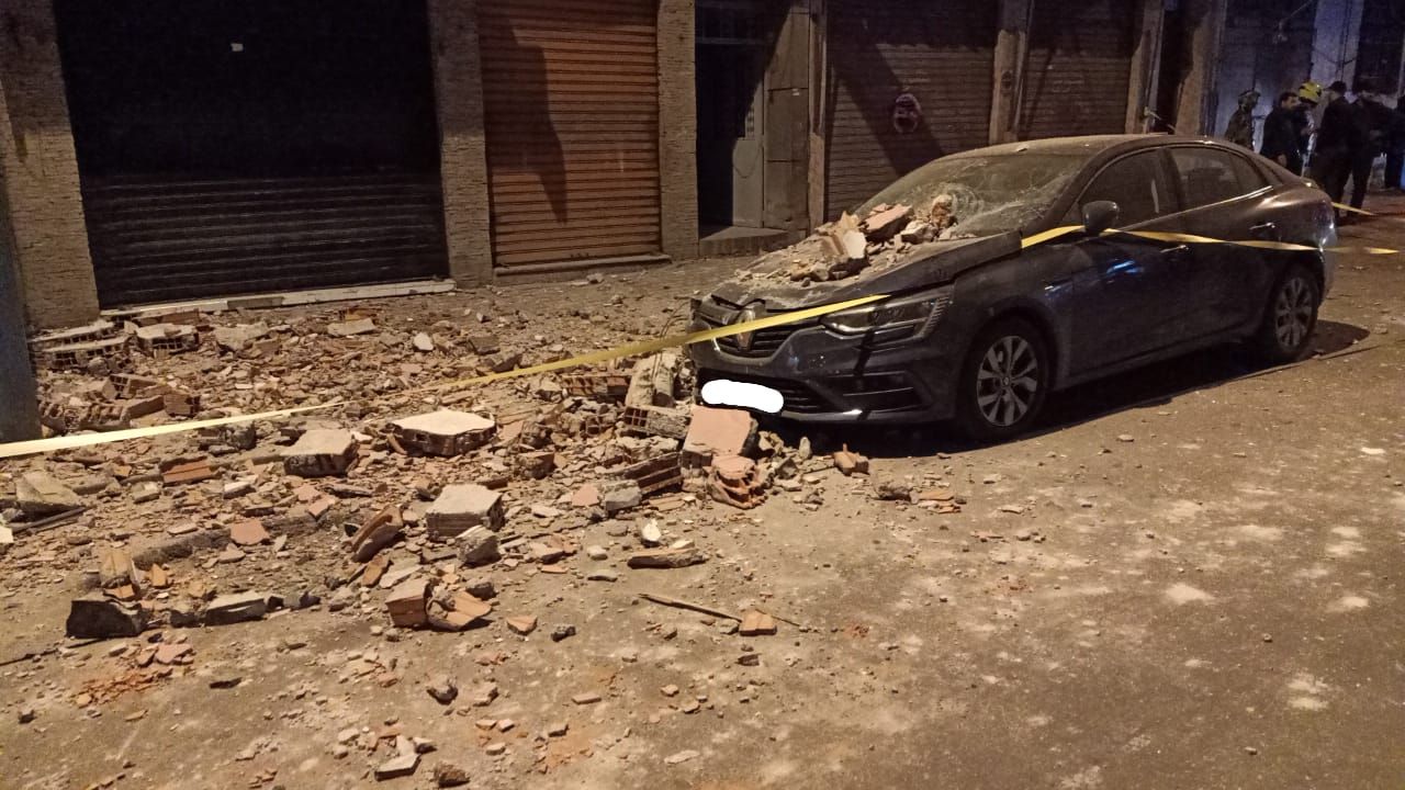 كما اصيبت سيارة كانت متوقفة بالشارع باضرار في حادث الانهيار .