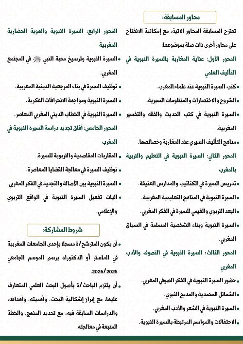 إعلان عن المسابقة العلمية الوطنية الخامسة بعنوان: “عناية المغاربة بالسيرة النبوية”
