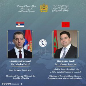 أجرى ناصر بوريطة، وزير الشؤون الخارجية والتعاون الإفريقي والمغاربة المقيمين بالخارج، اليوم الخميس، اتصالاً هاتفياً مع وزير الشؤون الخارجية بجمهورية صربيا، ماركو دجوريتش.