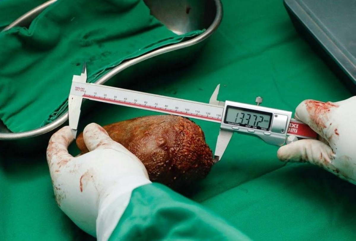وبلغ طول الحصوة 13,37 سنتيمتراً، في حين أن متوسط طول الكلية لا يتعدى 10 إلى 12 سنتيمتراً.
