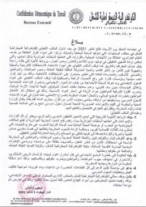 ونبه بلاغ النقابة الحكومة إلى خطورة الوضع الاجتماعي في ظل تغول لوبيات الرأسمال الريعي الاحتكاري، والاستمرار في استهداف جيوب المواطنات والمواطنين، وضرب حقوقهم ومكتسباتهم، وذلك أمام “استقالة الحكومة من أداء أدوارها ومهامها الدستورية”.