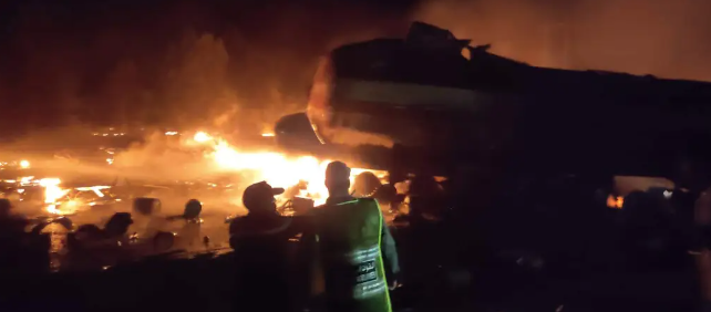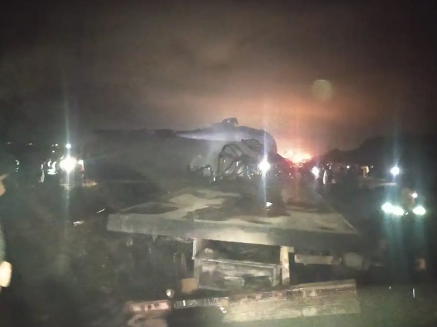 وحسب مصادر محلية، فإن الحادث وقع بين شاحنتين من الحجم الكبير، الأولى محملة بقنينات الغاز والثانية محملة بالمحروقات، ما تسبب في انفجار كبير.