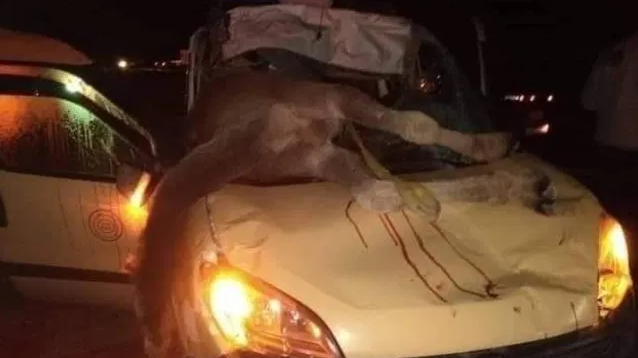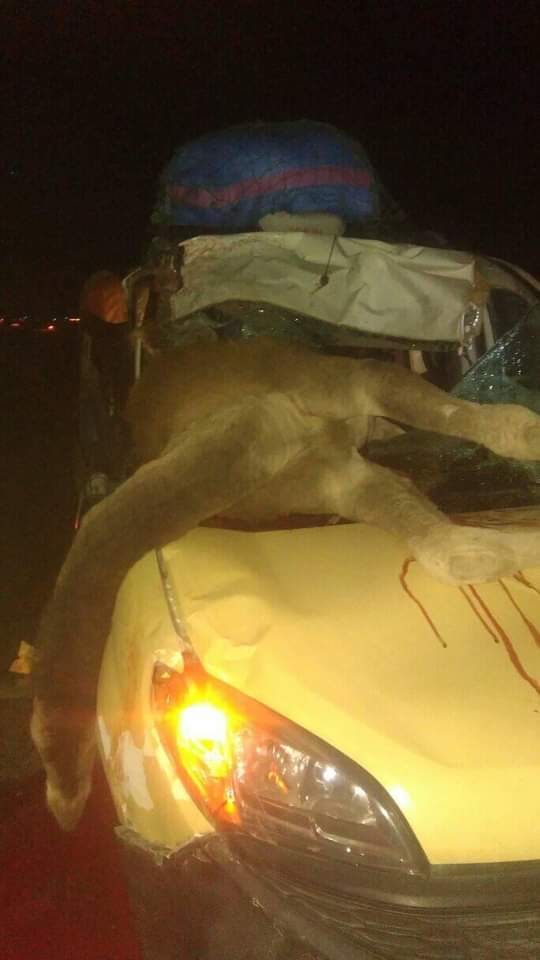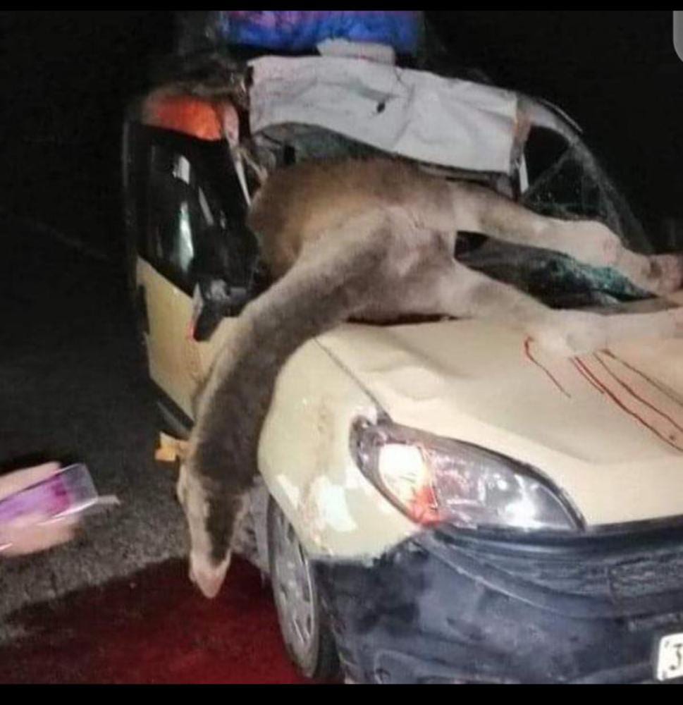 وحسب مصادر محلية فإن الحادثة تسببت في جروح متفاوتة الخطورة لركاب سيارة الأجرة، في حين نفق الجمل الذي اخترق الزجاج الأمامي لسيارة الأجرة ليصطدم بقوة بالركاب.