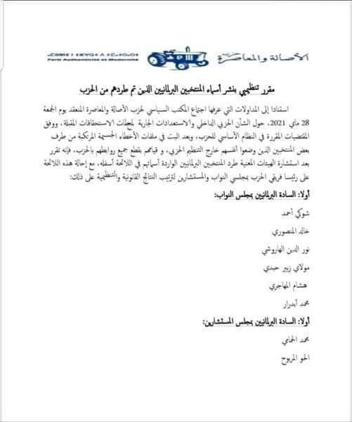 الأصالة والمعاصرة يطرد برلمانيين ضمنهم هشام المهاجري (وثيقة)