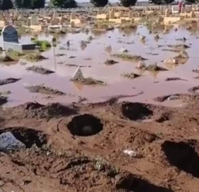 وتظهر الصور والمقاطع المصورة الأضرار التي تسببت فيها المياه التي غمرت المقبرة، مما أدى إلى تضرر بعض القبور في مشهد أثار استياء المواطنين ودفعهم للمطالبة بتدخل الجهات المسؤولة.
