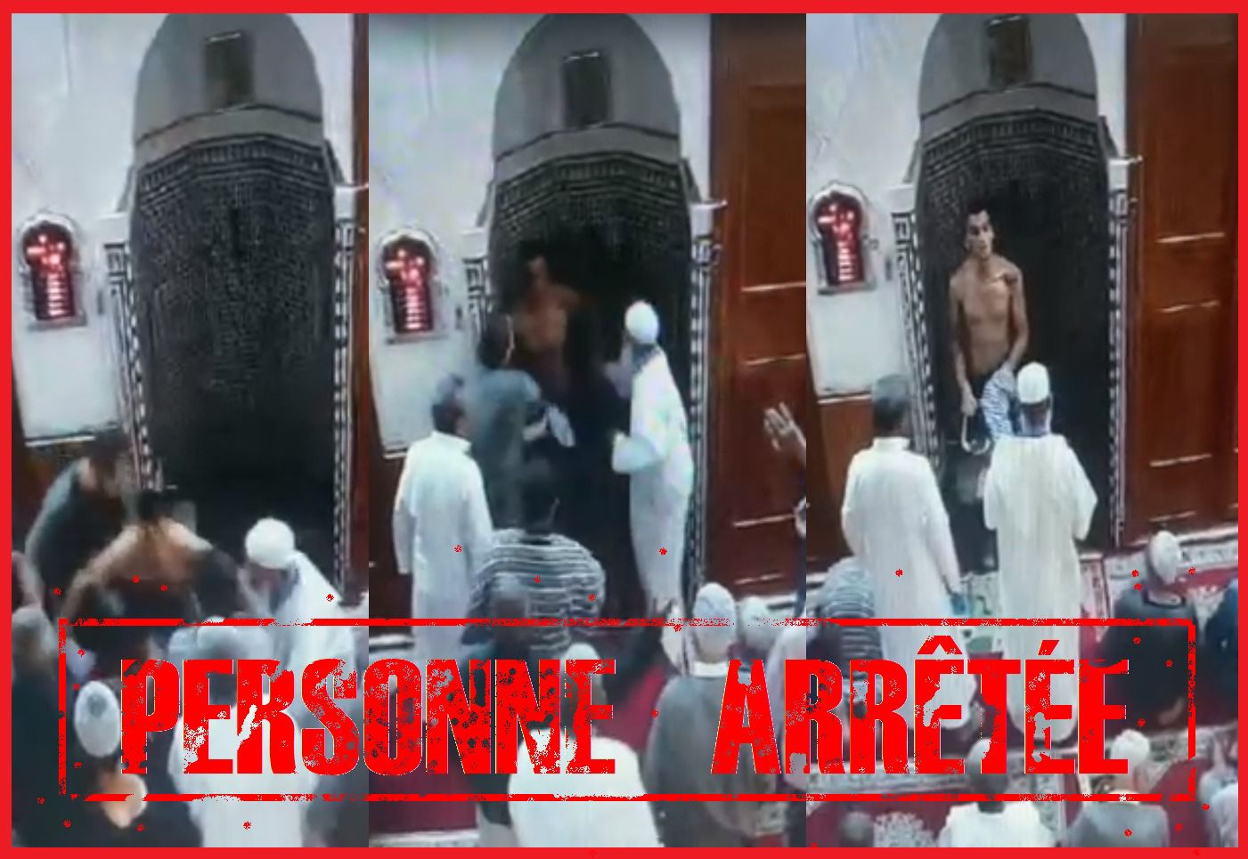 وكان المشتبه فيه قد أقدم على إحداث الفوضى بداخل أحد المساجد، وهي الأفعال الإجرامية التي شكلت موضوع شريط