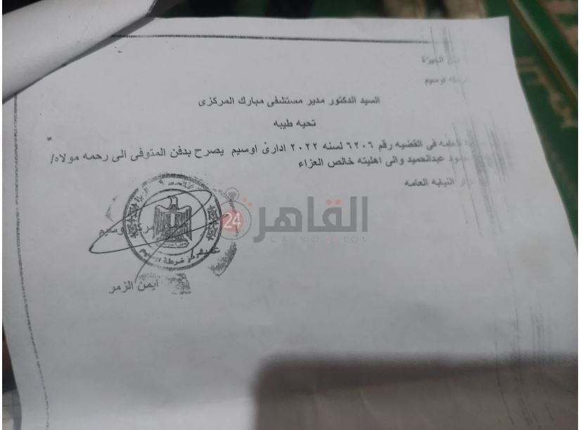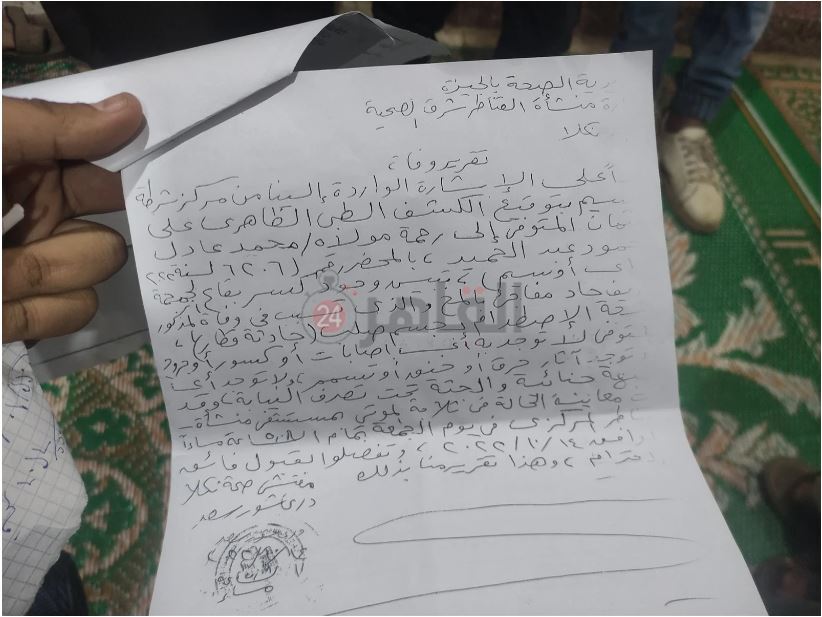 وأوضح عم الشاب العائد بعد دفن جثمانه بشهر في المنوفية، أنهم استخرجوا شهادة الوفاة وتقرير الوفاة والتصريح بالدفن، وجرى دفنه يوم الجمعة، في مشهد مهيب حضره المئات من القرية والقرى المجاورة، وحدث في الجنازة أكثر من شيء ملفت؛ أولها أن الأطفال هم من حملوا الجنازة، ووجود أحد الشيوخ الذين لا يعرفهم أحد من القرية، وعند الوصول إلى المقابر اختفى.
