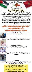 أعلنت مجموعة العمل الوطنية من أجل فلسطين، “في إطار فعالياتها المتواصلة في بناء وعي المقاومة الفكرية و مواكبة الدعم المتواصل لمعركة طوفان الأقصى المباركة ضد العدوان الصهيوني الهمجي بحق الشعب الفلسطيني الصامد… وفي إطار برنامج السكرتارية الوطنية لمجموعة العمل المتعلق بسلسلة الندوات والمحاضرات الفكرية الموازية للفعل التعبوي الميداني”، عن “تنظم المجموعة ندوة فكرية تحت عنوان: “الإعلام في سياق معركة طوفان الأقصى.. بين المهنية الإعلامية..وسردية الدعاية الصهيوتطبيعية”.
