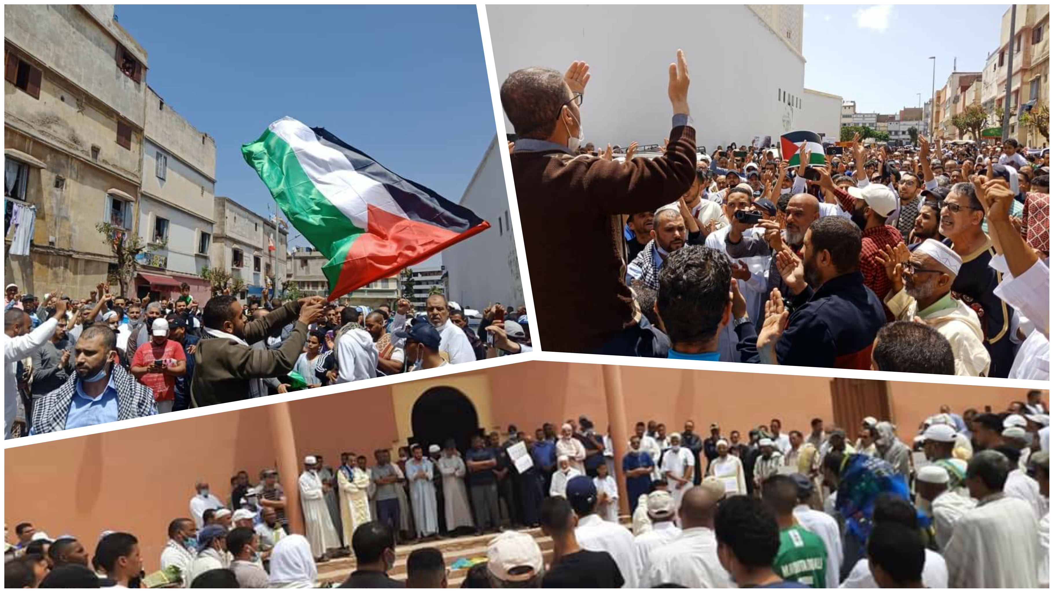 احتشد العشرات من المصلين عقب صلاة الجمعة، أمام مساجد عدة مغربية أبرزها الدار البيضاء وتطوان والراشيدية، في وقفات احتجاجية تضامنية مع الشعب الفلسطيني في محنته التي يعيشها منذ أيام جراء قصف الاحتلال الاسرائيلي المتزايد.