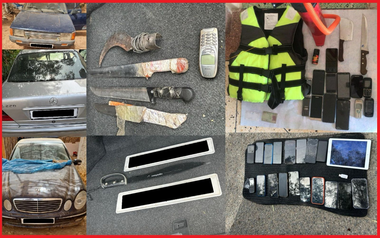 وأضاف أن عمليات التفتيش المنجزة في إطار هذه القضية مكنت من حجز معدات للملاحة البحرية، وأربع سيارات ومجموعة من صفائح التسجيل المزورة وأسلحة بيضاء، علاوة على حجز مجموعة من الهواتف النقالة ومتعلقات شخصية ومبالغ مالية يشتبه في كونها من عائدات هذا النشاط الإجرامي.