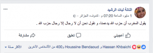 كتبت النانة مباشرة بعد قطع المغرب العلاقة مع إيران: “يقول المغرب أن حزب الله يدعمنا، ونقول نحن أن لارجال إلا رجال حزب الله”.