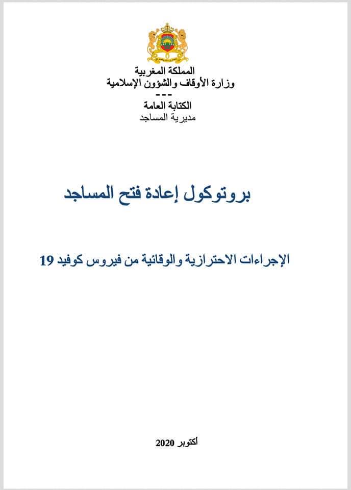 هذا ونص البروتوكول أيضا إقفال المساجد فور الانتهاء من صلاة الجمعة، وعدم السماح بصلاة النوافل.