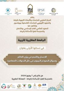 ينظم المركز المغربي للدراسات والأبحاث التربوية بالرباط، والمعهد الأوروبي للدراسات الفلسفية ببروكسيل، بتعاون مع المعهد العالمي للفكر الإسلامي بواشنطن، والمدرسة العليا للأساتذة بالرباط، الجامعة المغاربية للتربية في نسختها الأولى، التي يترأسها خالد الصمدي، كاتب الدولة لدى وزير التربية الوطنية والتكوين المهني والتعليم العالي والبحث العلمي المكلف بالتعليم العالي والبحث العملي.