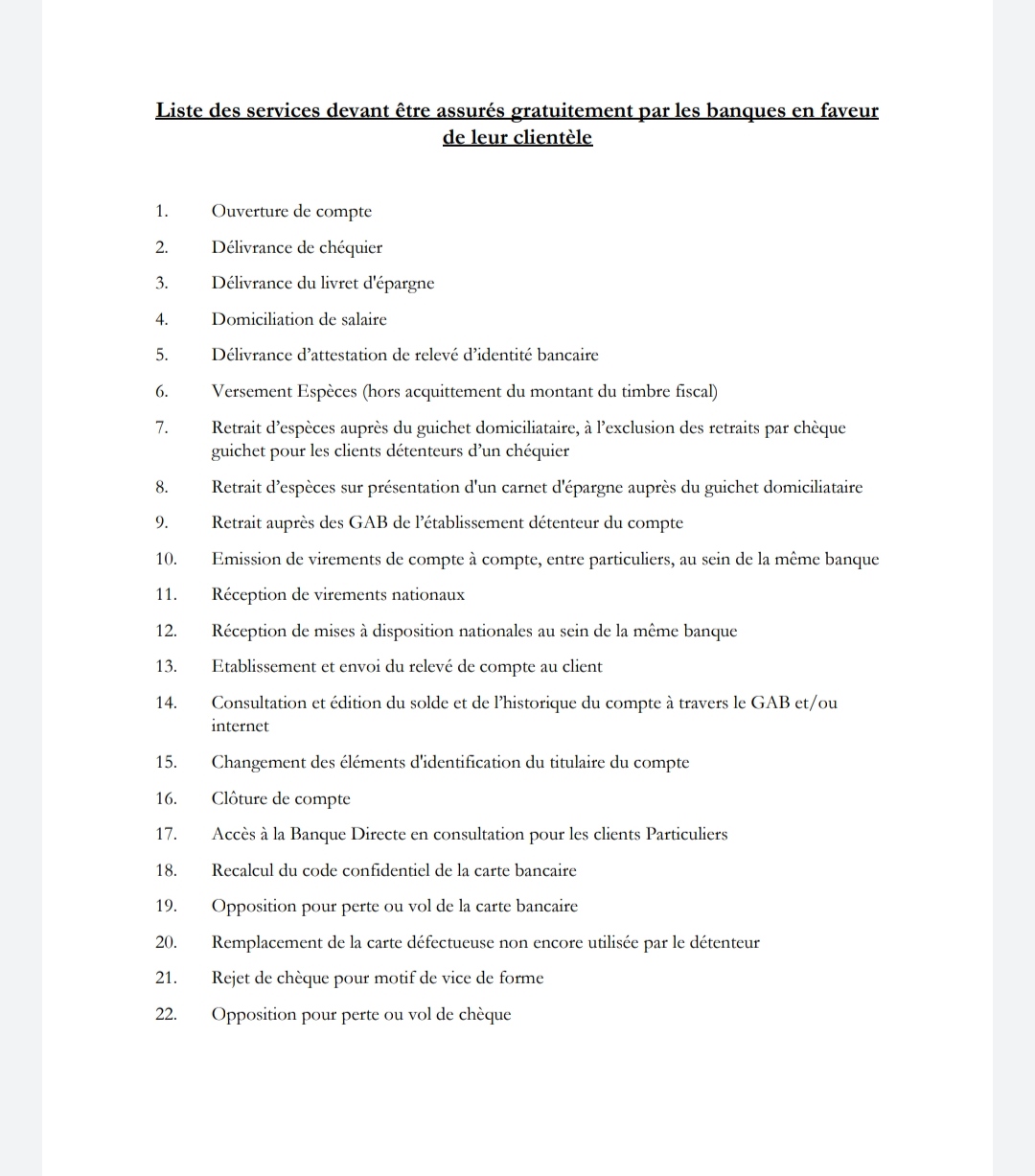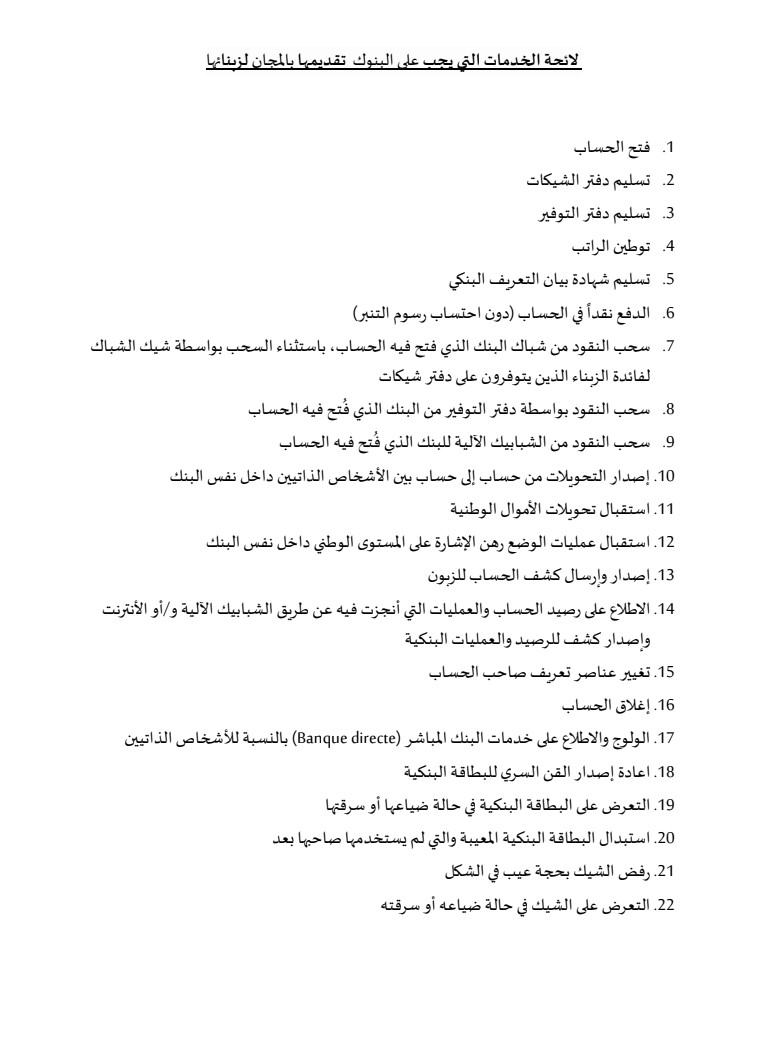 ذكّر والي بنك المغرب خلال ندوته الصحفية الأخيرة بمجانية بعض الرسوم والخدمات، حيث سيكون الزبون معفيا من 22 رسما بنكيا.