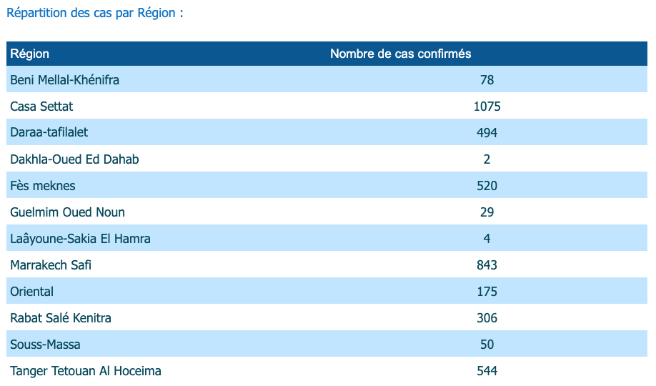 أن جهة الدار البيضاء سطات، في المرتبة الأولى بتسجيلها ل 1073حالة إصابة.