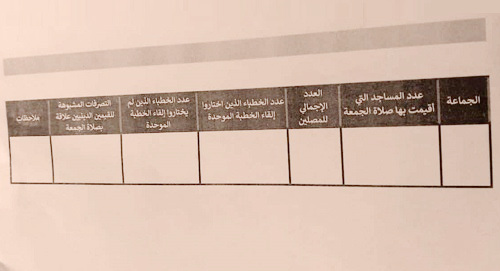 فهذه وثيقة ستحصي عدد الخطباء الذين التزموا الخطبة الموحدة والذين لم يلتزموا بها.. مع خانة ورد فيها “التصرفات المشبوهة للقيمين الدينيين علاقة بصلاة الجمعة“!