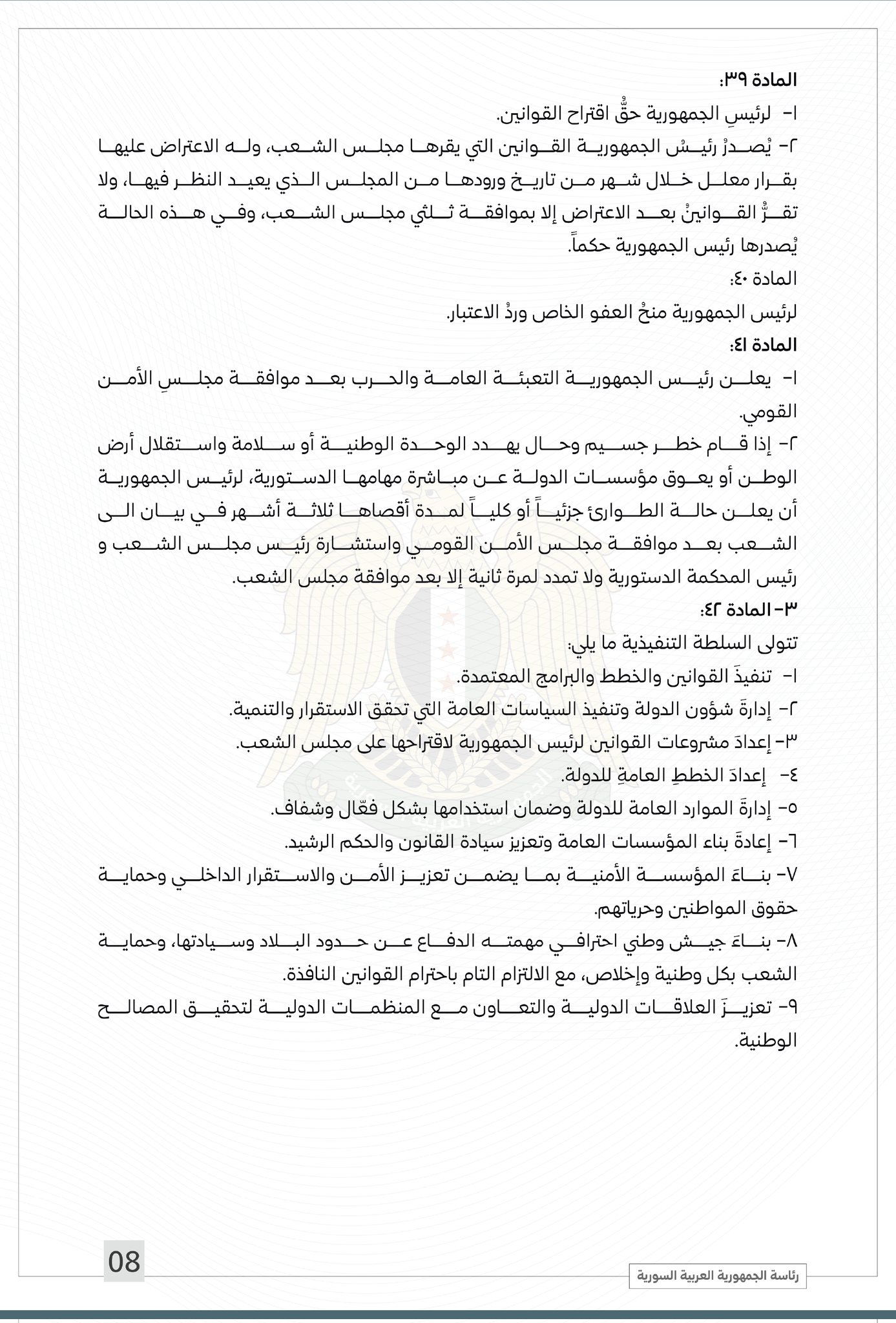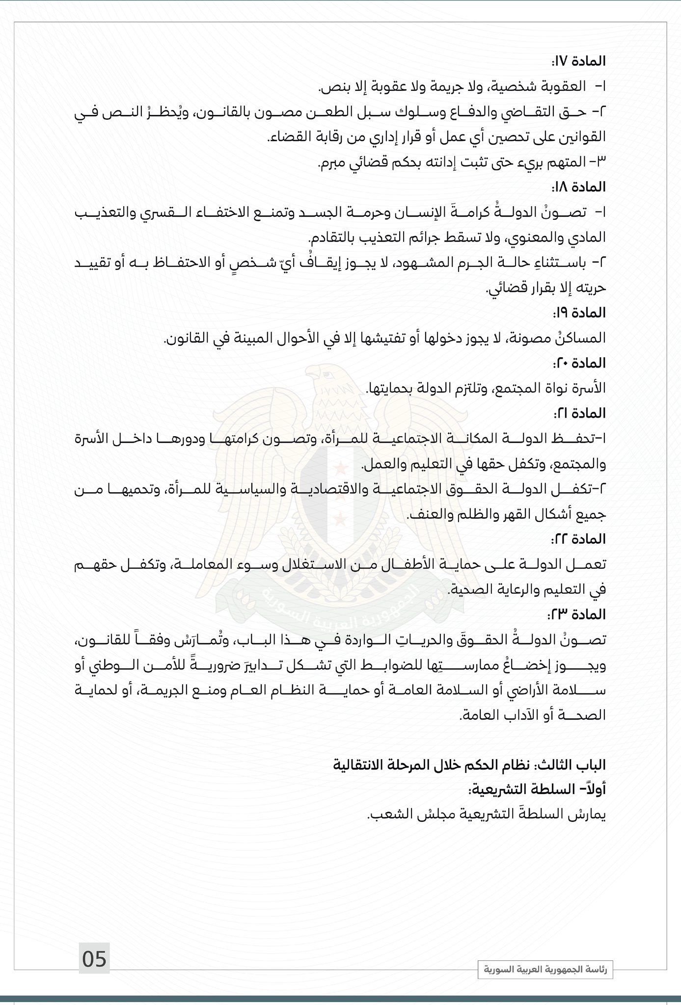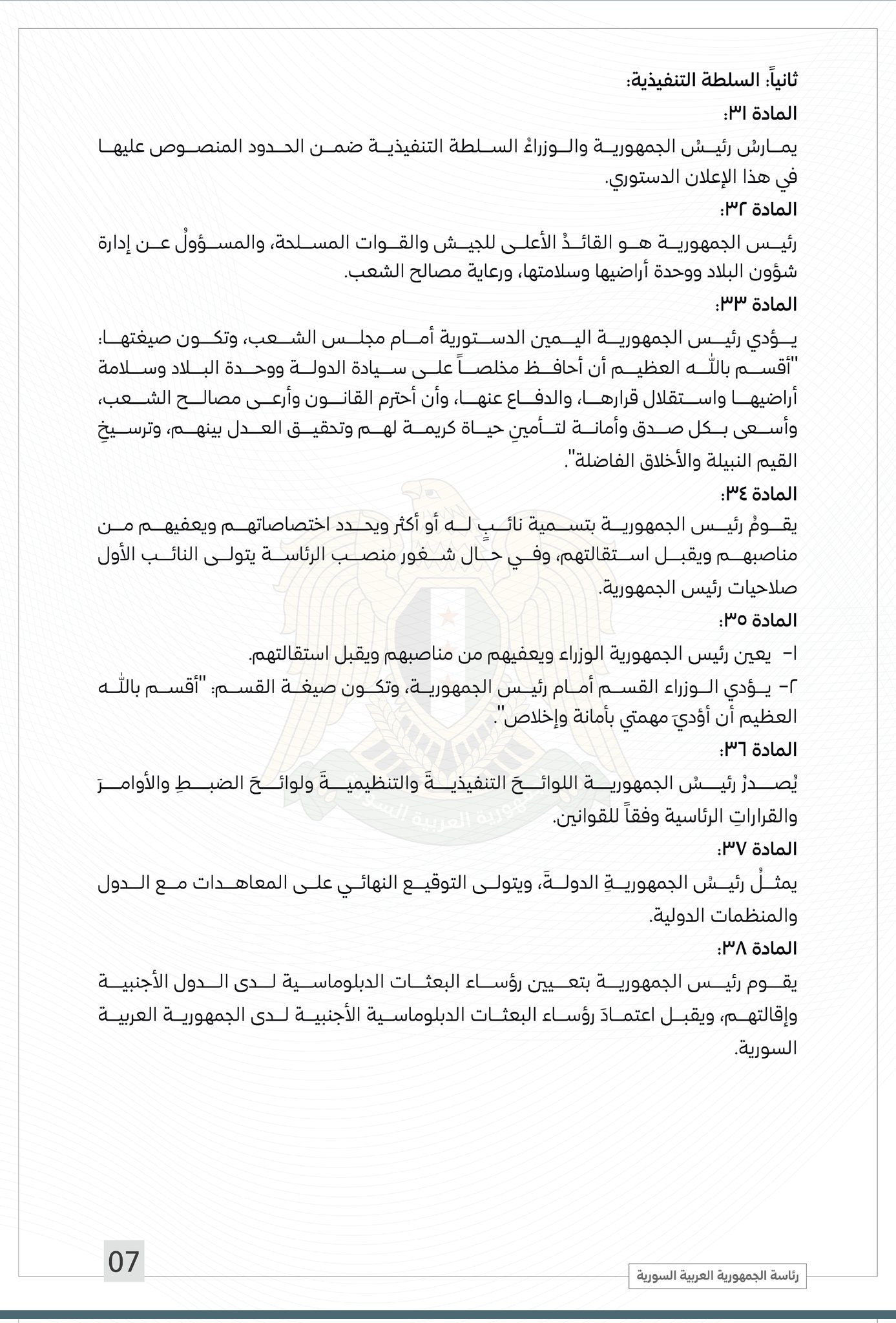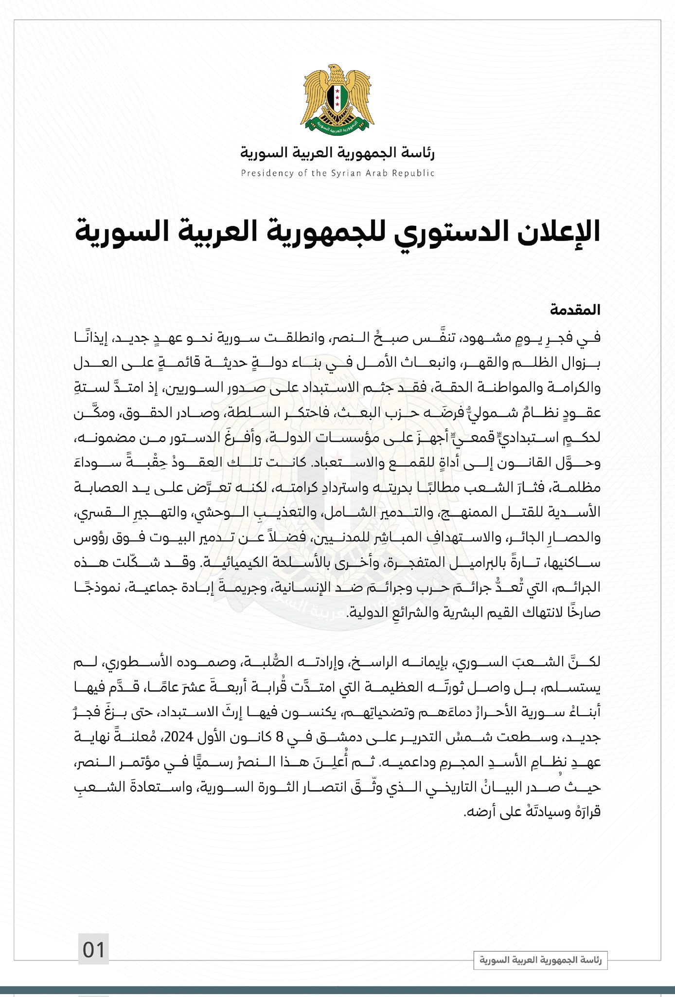 الرئاسة السورية تنشر النص الكامل للإعلان الدستوري