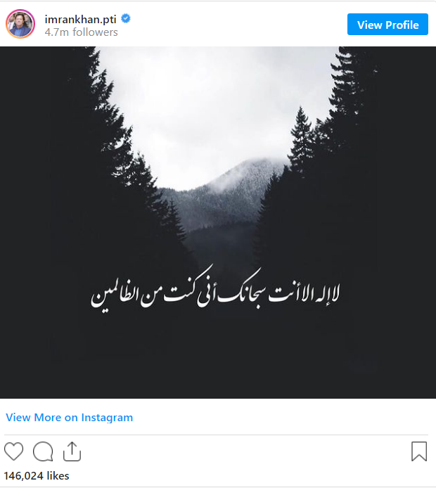 وشارك خان منشورا عبر حسابه الرسمي على موقع “إنستغرام” للتواصل الاجتماعي، وأرفقه بدعاء فك الكرب الإسلامي هو: “لا إله إلا أنت سبحانك إني كنت من الظالمين”.