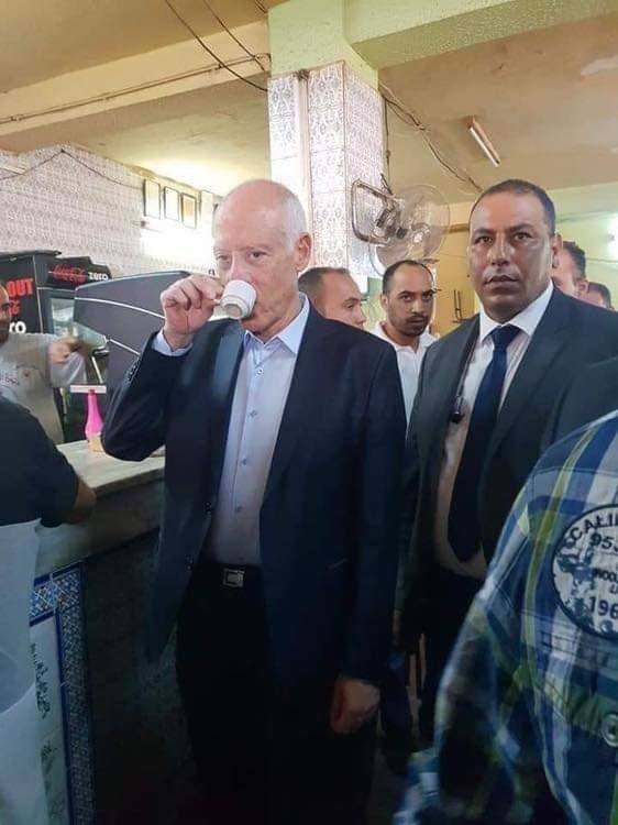 اشتعلت مواقع التواصل الاجتماعي بعد تداول نشطاء لصور للرئيس التونسي المنتخب قيس سعيد وهو يشرب قهوته بمقهى شعبي في العاصمة تونس.