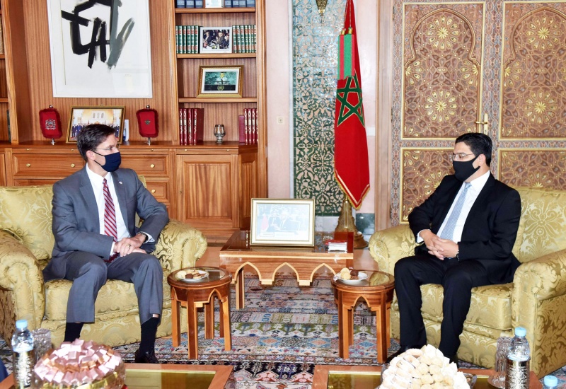 جاء ذلك في مؤتمر صحفي مشترك عقده الوزير المغربي المكلف بإدارة الدفاع الوطني عبد اللطيف لوديي، ووزير الخارجية ناصر بوريطة، ووزير الدفاع الأمريكي مارك إسبر، على هامش زيارة رسمية يجريها الأخير للرباط.